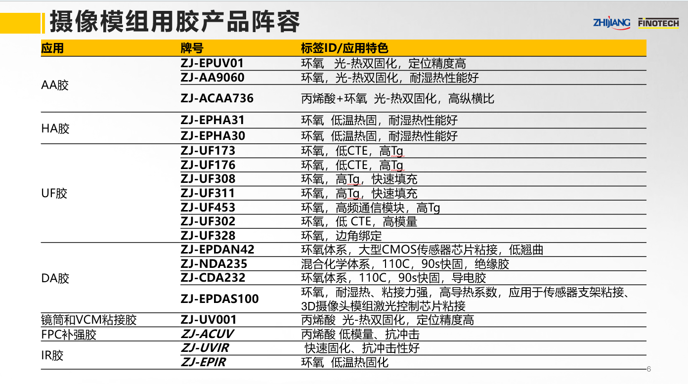 之江公司為攝像模組粘接固定推出了如下系列產品: